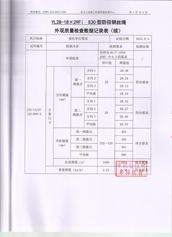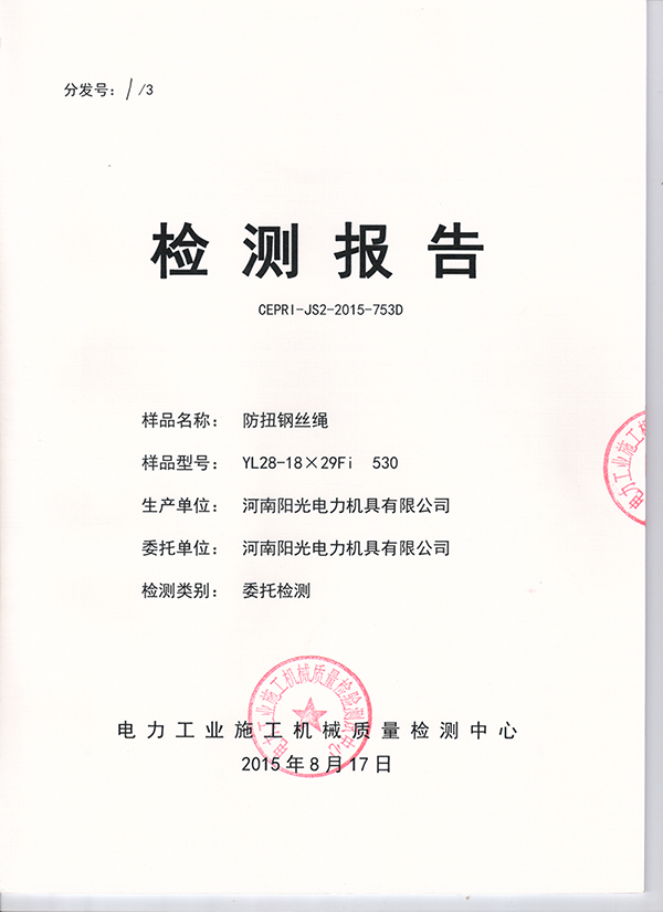恭祝我公司YL28-18×29Fi 530通過電力工業(yè)施工機械質量檢測中心認證